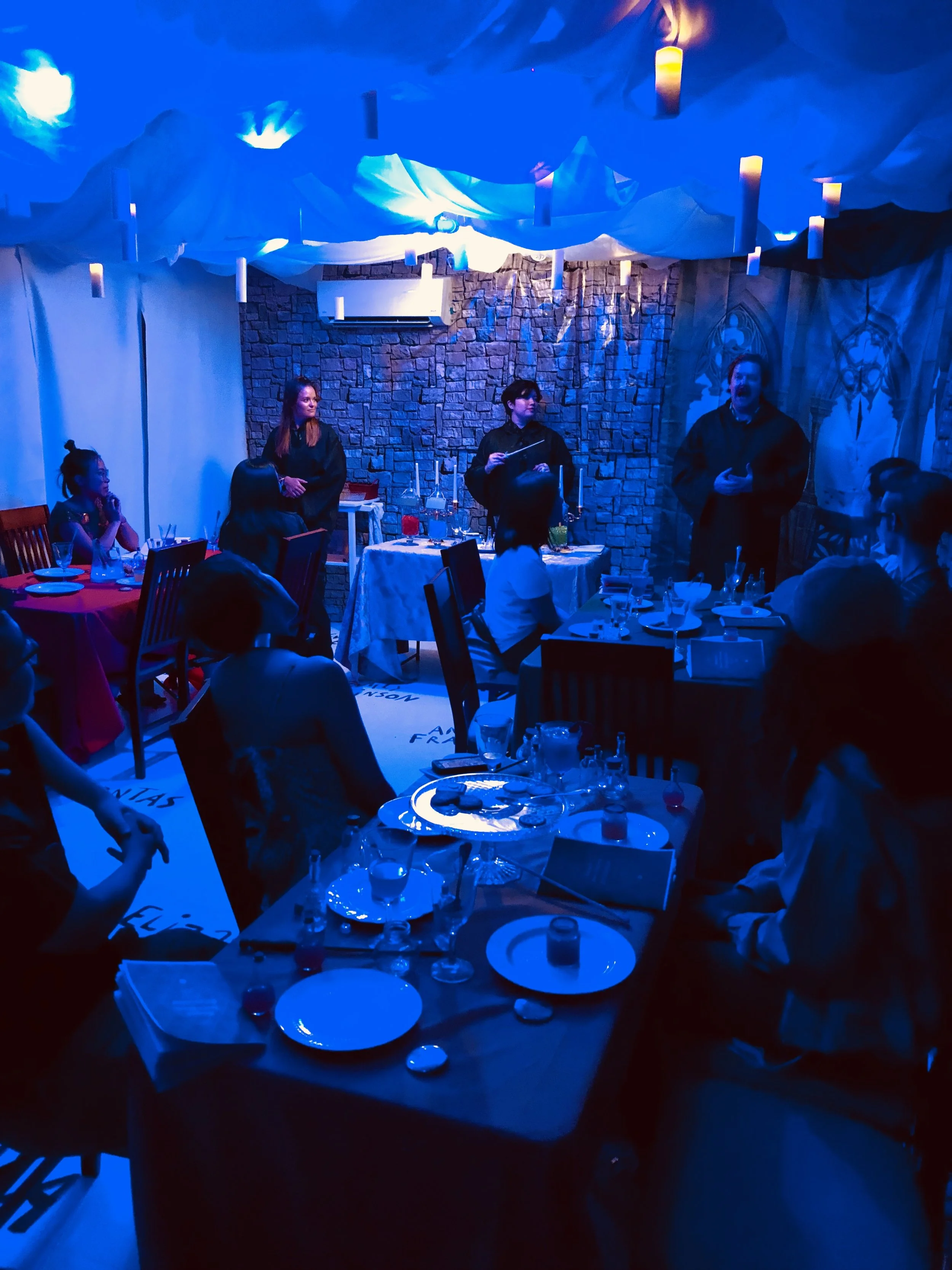A proud example of an in house production, Wizard Cocktail Hour was built as an interactive happy hour experience. Curated for adults, participants completed a shortened wizard education experience in a 75-minute journey with detailed, worldbuilding characters, bespoke cocktails, and curated interactive moments - all in a delightfully immersive environment designed to transport the audience into a marvelous world. Custom built props and engineered effects (flame, programmed lighting, etc.) brought the details of the world to life.